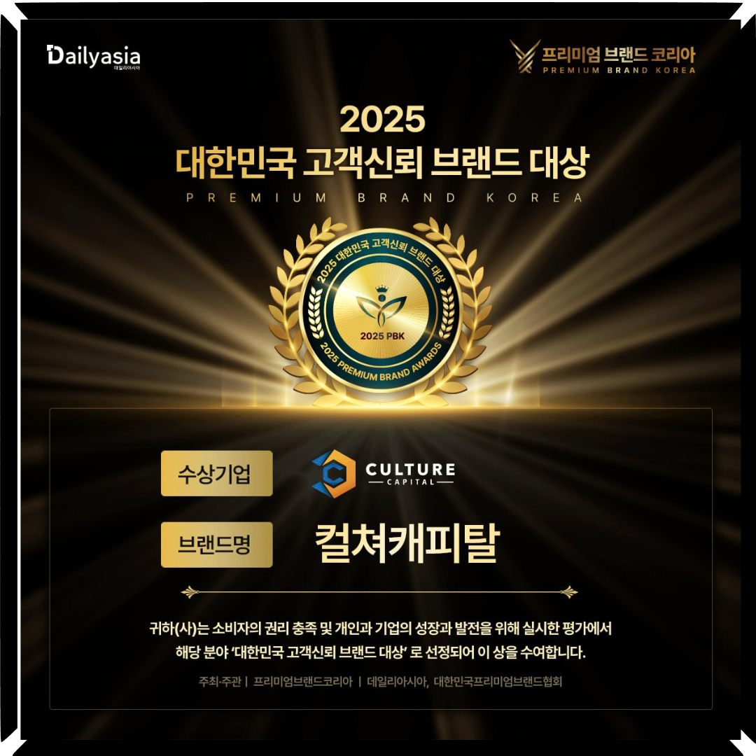 프리미엄브랜드코리아가 발표한 2025 브랜드 평가 결과에서 해외선물 서비스 부문 3관왕을 달성한 컬쳐캐피탈. 소비자 만족도, 고객신뢰, 브랜드 파워까지 동시에 인정받은 배경에 대해 직접 이야기를 들어봤다.