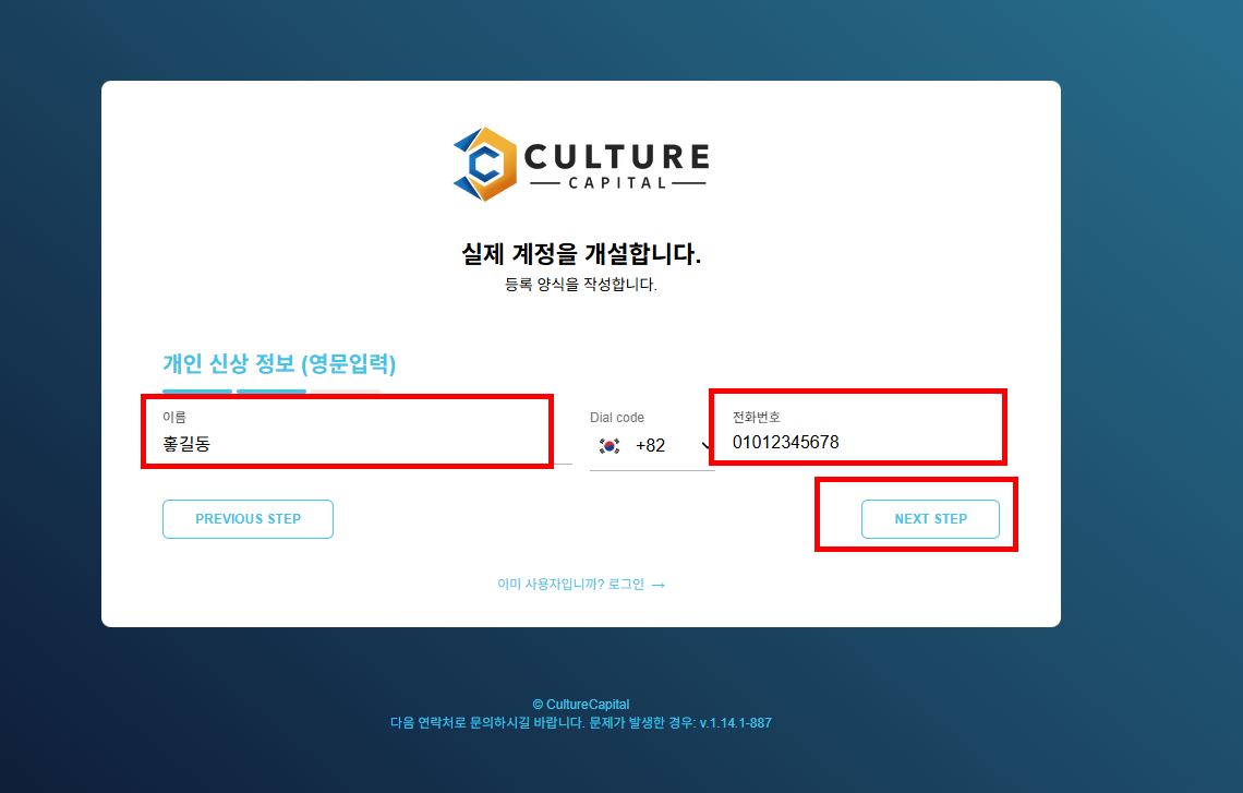컬쳐캐피탈 모의 (데모) 계정 만드는 방법