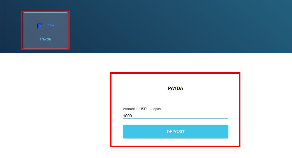 Amount In USD to Deposit 에 입금할 금액을 입력한후 하단에 DEPOSIT 버튼을 눌러주세요.